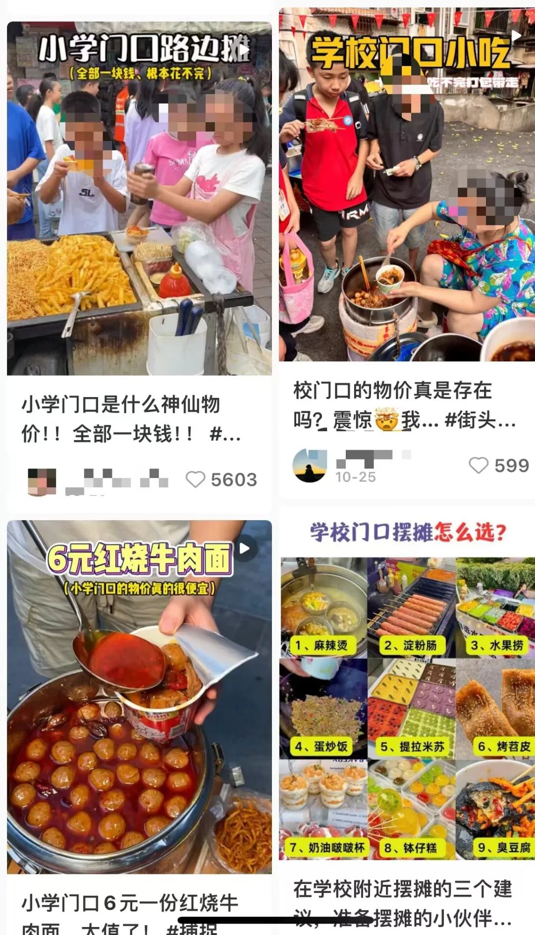图源:@旅行为了吃甚至有的年轻人特种兵旅行,也会把小学门口当成美食广场来打卡。“就跟小时候最喜欢吃的东西,都在学校附近一样。去别的城市的学校门口觅食,肯定也能吃到物美价廉的地道小吃。”