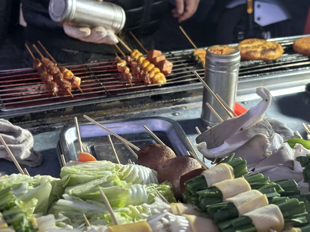 图源:@旅行为了吃每次下班下得早,大林就会骑着电驴去小学门口的路边摊转一圈,看看有没有出摊的商家。“先是花三块钱买盒寿司,然后五块钱买碗炒面,再来点铁板豆腐和狼牙土豆溜溜缝,差不多就吃饱喝足了。”
