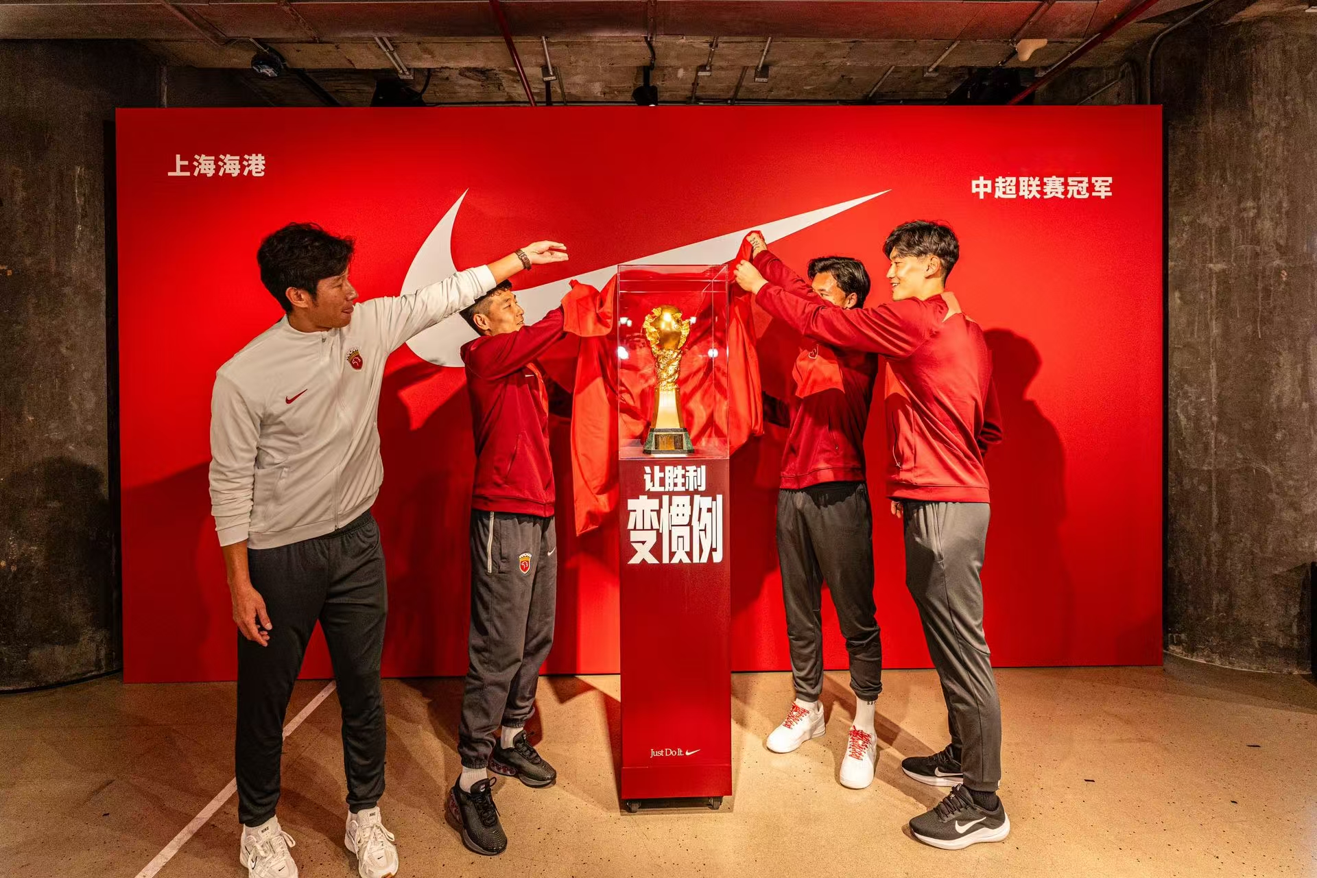 耐克为上海海港俱乐部举办中超夺冠庆胜会11月6日晚,耐克在淮海品牌体验店为刚刚夺得中超联赛冠军的上海海港俱乐部举办了庆胜会。武磊、张琳芃、颜骏凌三位夺冠功臣来到现场,与球迷们共同庆祝球队第三次获得中超联赛冠军。