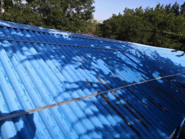 (2)对于局部弯折翘起的彩钢板应用自攻螺钉或铁丝固定,对局部损坏严重的区域应拆除或更换。