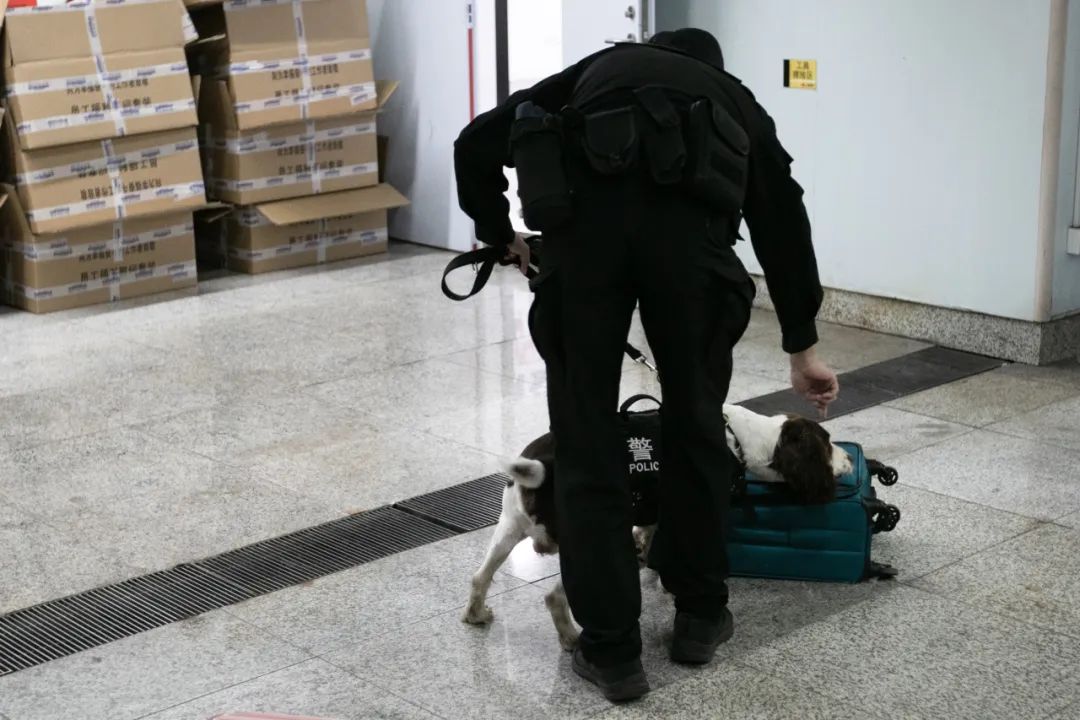 90年的章恺良毕业于中国刑事警察学院警犬技术专业,2013年加入轨交总队警犬支队,是支队的一名青年骨干。从第一届进博会开始,章恺良已经连续7年参加进博会安保工作了。他的搭档“阿彪”是条史宾格犬,有着史宾格聪明、热情、活泼、忠诚的典型性格,同时具备专业的职业素养。一旦章恺良出现在它的面前,“阿彪”立刻就进入状态,精神抖擞地听从每一声指令。“阿彪”可是条经验丰富的警犬,七届进博会安保安保任务,一次没落。其实,在进博会开始前,章恺良和“阿彪”就前往场馆执行安全嗅检工作。“‘阿彪’去过“四叶草”、世界会客厅等安保重点场所,曾24小时驻扎场地备勤,每隔2小时就对场地外围以及进出物资进行嗅检。”章恺良介绍说。