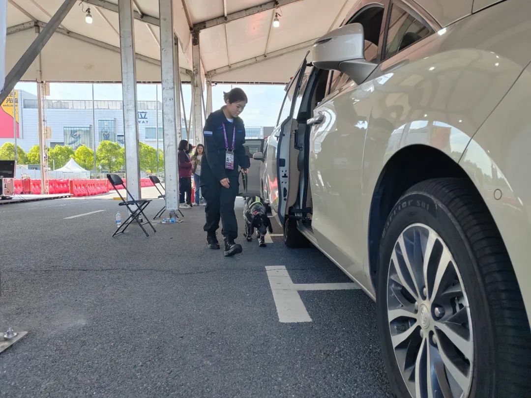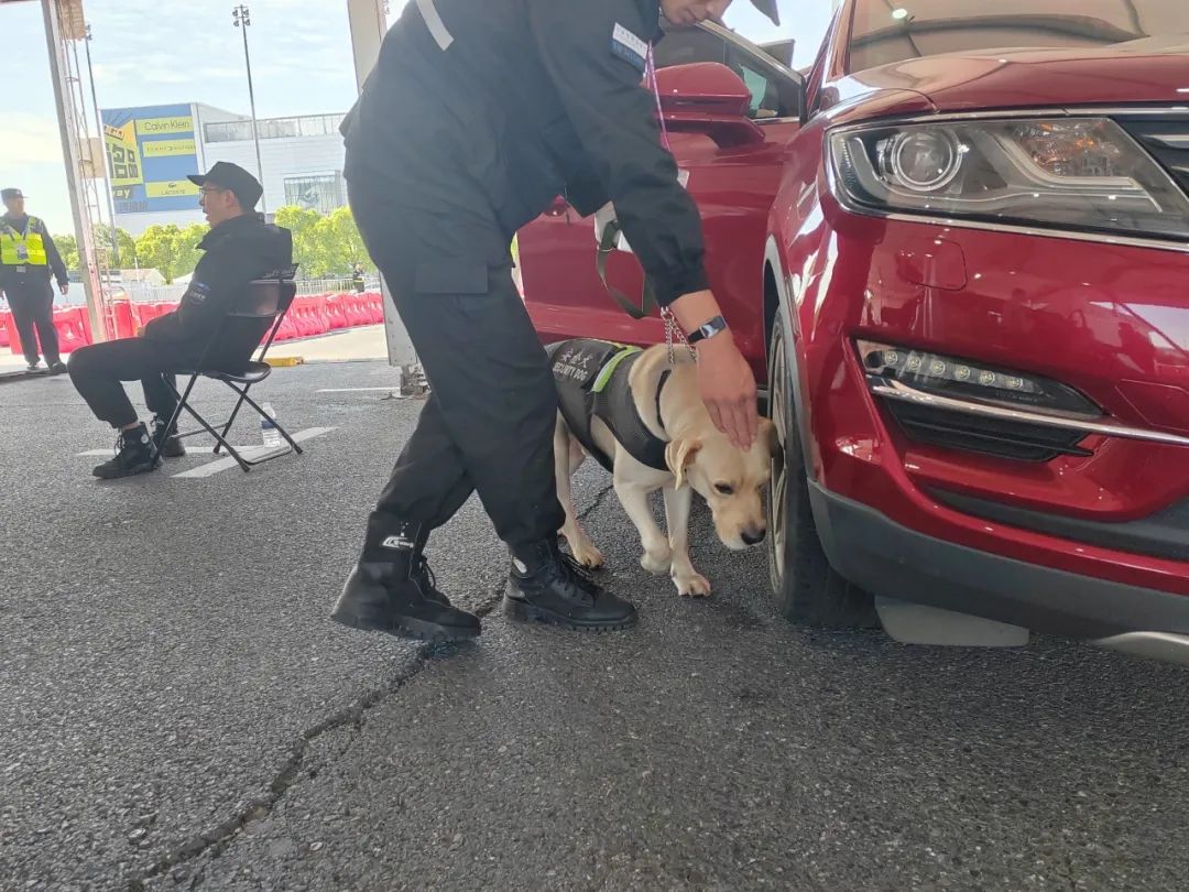 其实早在进博会正式开幕前,“汪汪”警官就已经在为第七届进博会安保贡献自己的努力。10月24日第一辆货车驶入远端安检点,在经过车底智能成像和高台岗位检查后,“汪汪”警官便会和自己的训导员一起通过其灵敏的嗅觉来确定车辆是否携带可疑物品。检查完毕后,警犬会向后撤一步,并向训导员发出信号,表示车辆未发现异常。随后,安保人员会对车上人员、车辆证件及整车进行详细检查。所有检查项目确认无误后,车辆方可驶离安检区域。值班编辑:张腾