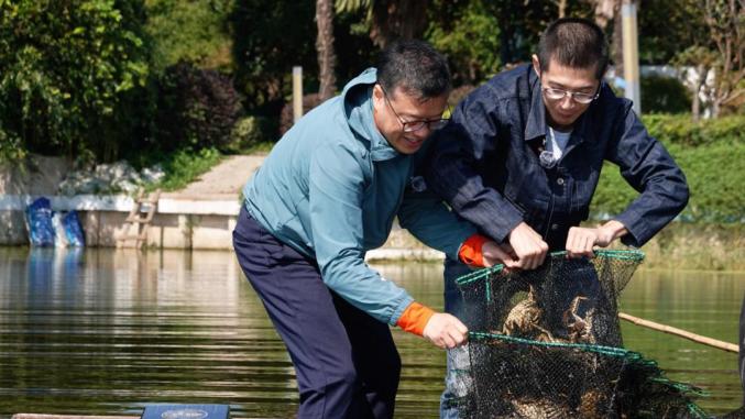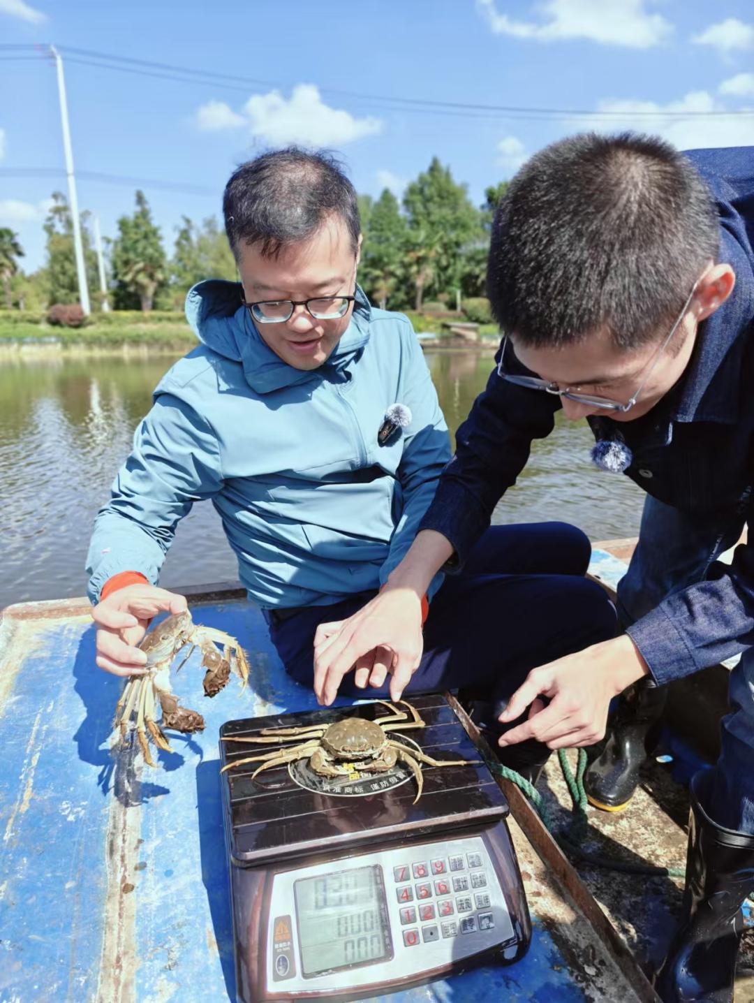 塘主马健桓,90后,从上海海洋大学毕业后,回到崇明跟随父亲一起发展宝岛蟹庄。他介绍,在科学培育下,受崇明优质水源滋养的“崇明1号”告别了以往“小毛蟹”“乌小蟹”这样的称呼,每年宝岛蟹庄里个大膏肥的清水蟹比比皆是,是品蟹季客人们的心头好。