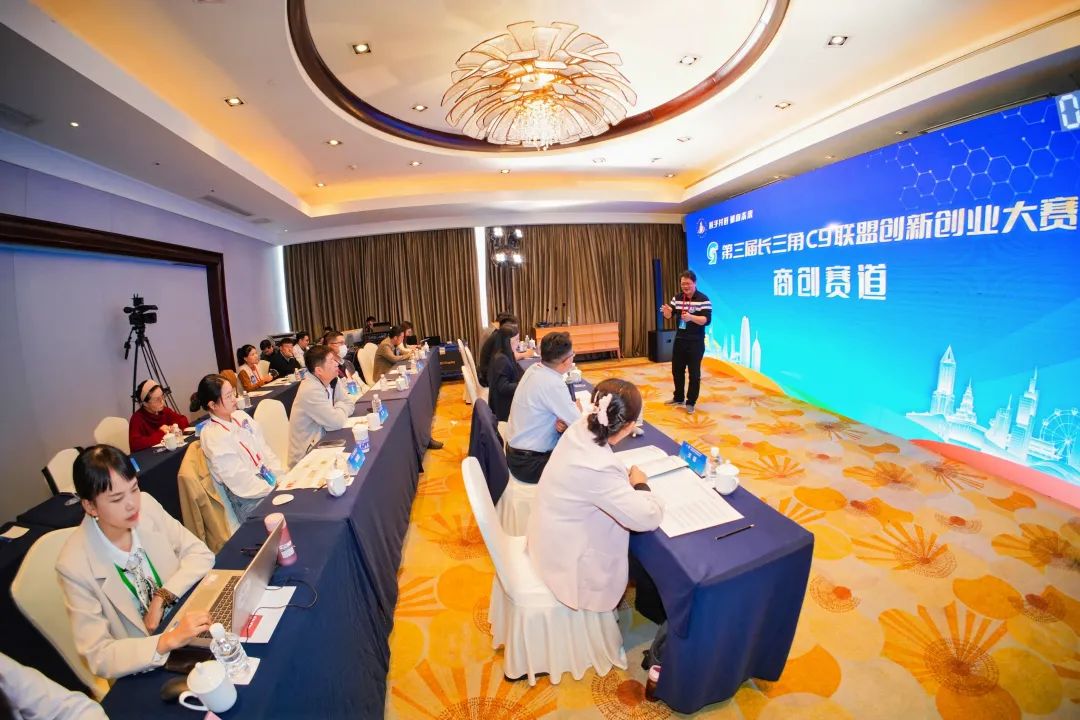 颁奖现场。本届大赛由长三角C9联盟各人社局主办,鄞州区人社局承办。大赛开设科技创新和商创融合两大赛道,涵盖了大数据、工业互联网、电子商务、物联网、人工智能、虚拟仿真、生物医药、新能源等多个领域。