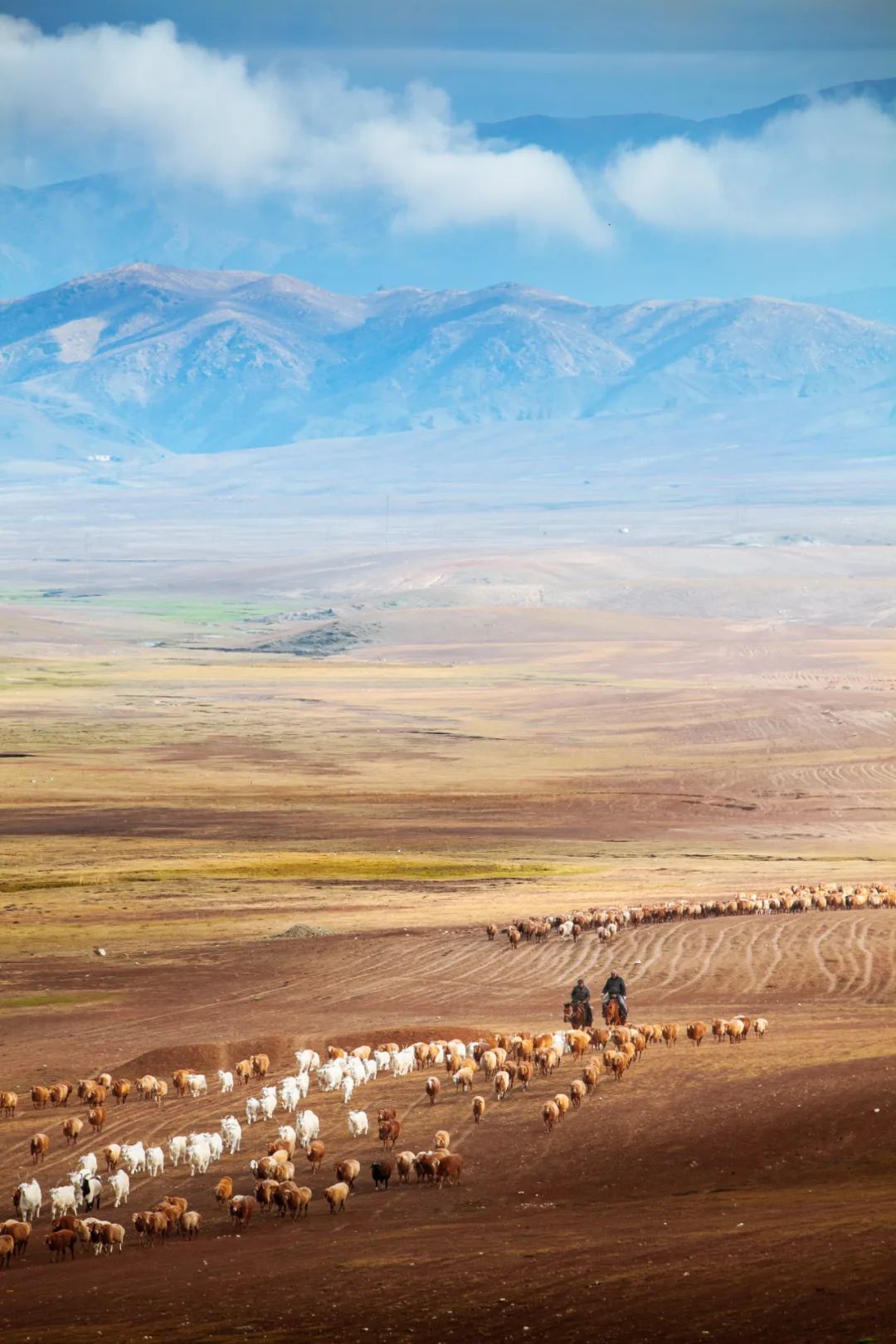 新疆最北端,阿尔泰山麓的阿勒泰地区垂直气候差异明显,哈萨克族牧民根据四季变化在荒漠草原、山地草原、山地草甸、高寒草原间不断转场,牲畜四季都能吃到“时令美食”。牧民们培育出的哈萨克羊是新疆的原始羊系,细分品种分布在北疆的各个牧场中。连中国培育成的第一个细毛羊品种——新疆细毛羊都有它的血统。