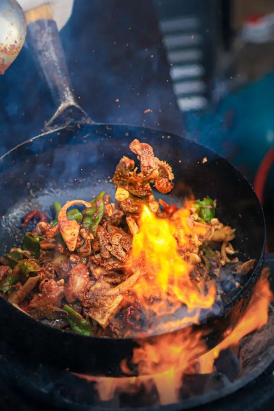 还有一些炒肉不放植物油,而是用羊尾油称为干烧。羊油烧羊,羊味的浓厚更显层峦迭加,这才称得上是羊了个羊吧。