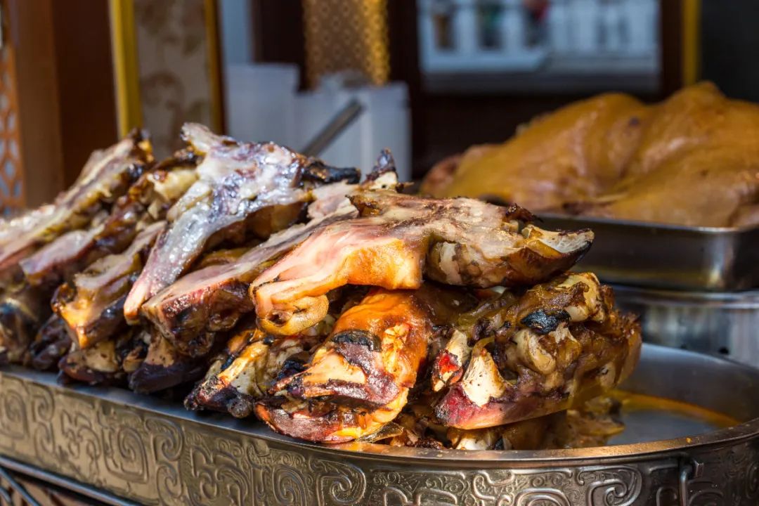 其中最著名的当属阿勒泰羊,体型硕大的它们拥有犹如驼峰般充满脂肪的尾巴和臀部。硕大的体型意味着宰杀后肉量多,隆起的臀部和大尾巴意味着丰富的脂肪提供芳香物质,瘦肉也因充盈着肌间脂肪而口感鲜嫩。