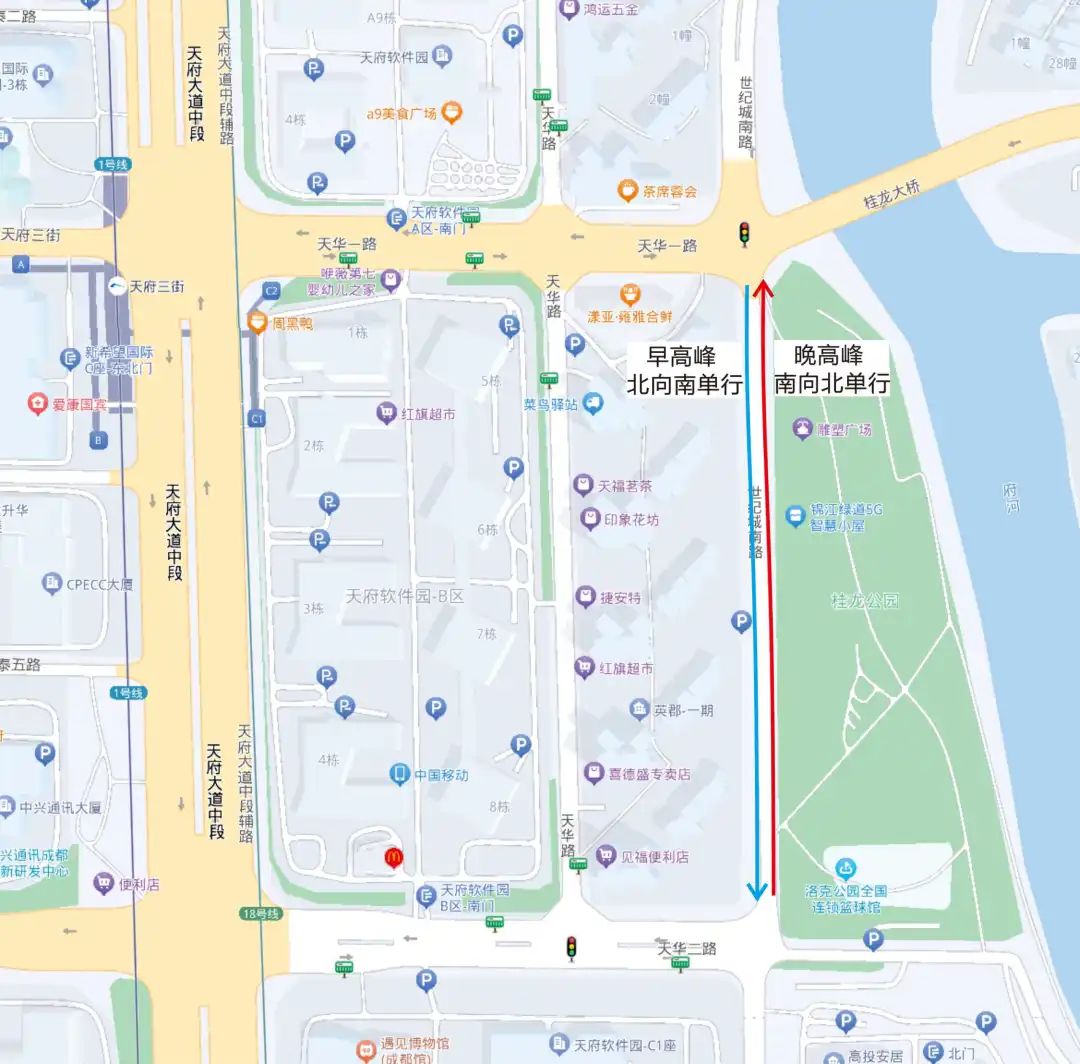 针对该路段的特征,综合考虑园区内众多员工的出行需求,市公安局交管局决定对世纪城南路(天华一路至天华二路)这一关键拥堵节点的交通组织方式进行优化调整。
