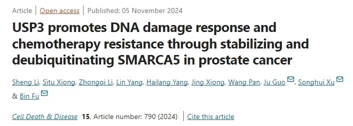 USP3通过SMARCA5促进化疗耐药性