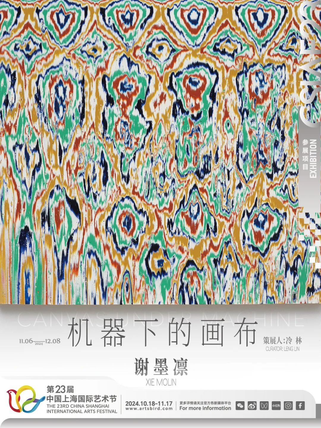 作为第二十三届中国上海国际艺术节参展项目,上海复星艺术中心举办的艺术家谢墨凛的个展“机器下的画布”于2024年11月6日至12月8日展出。此次展览展出了艺术家在过去十余年间创作的近50件作品,呈现他在创作中与机器长期对话所带来的绘画的演变,以及对人与机器之间关系的思考。