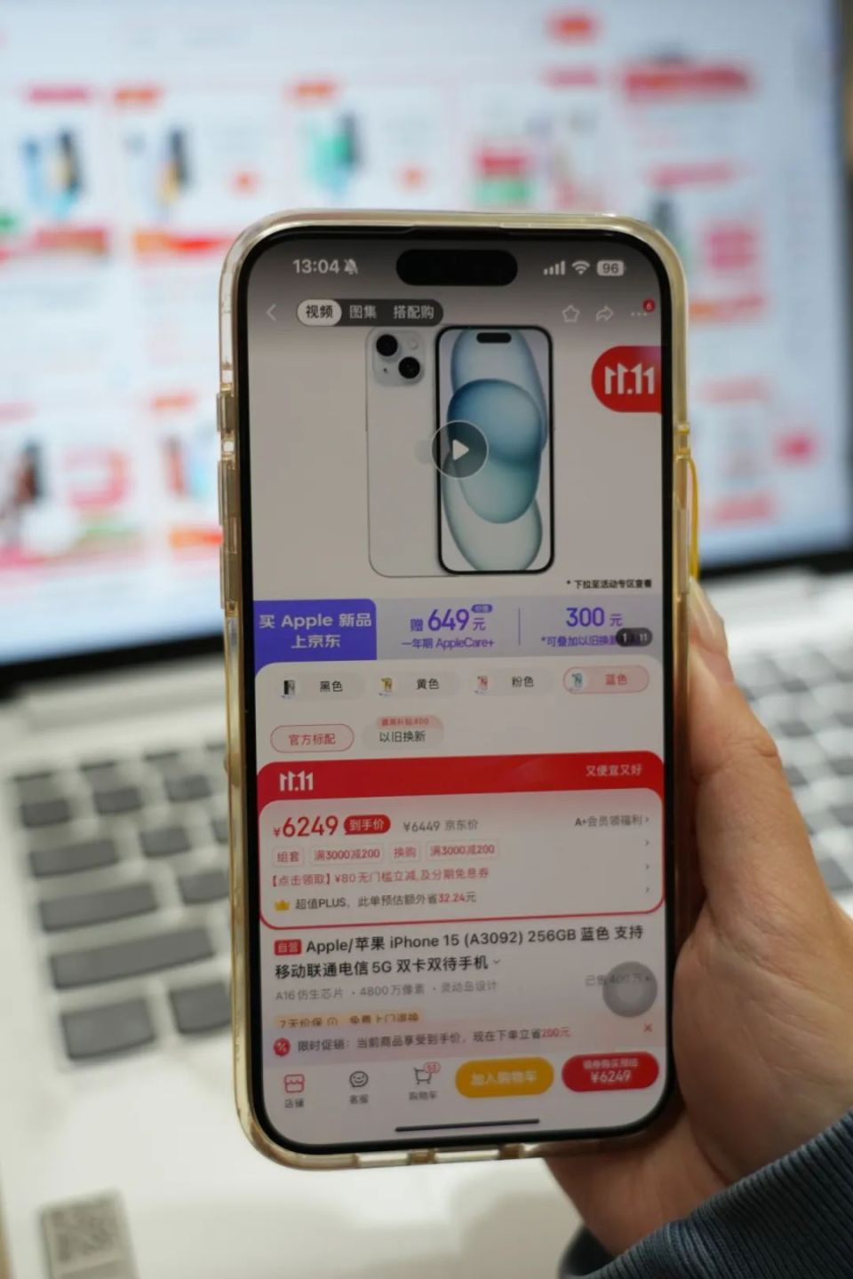 《IT时报》记者登录京东App发现,11月7日该款型号手机价格已上涨至6249元,该店客服表示,店铺是Apple授权的经销商店铺,价格会随着运营成本、活动力度、市场波动等因素随时调整。记者注意到,该型号手机目前在苹果天猫官方旗舰店的售价为6399元,客服也表示,iPhone 15系列暂时没有活动优惠。