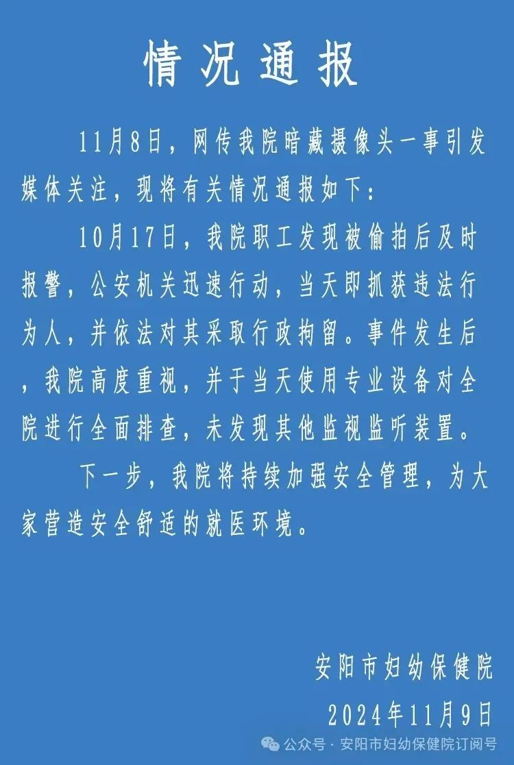 安阳市妇幼保健院发布情况通报: