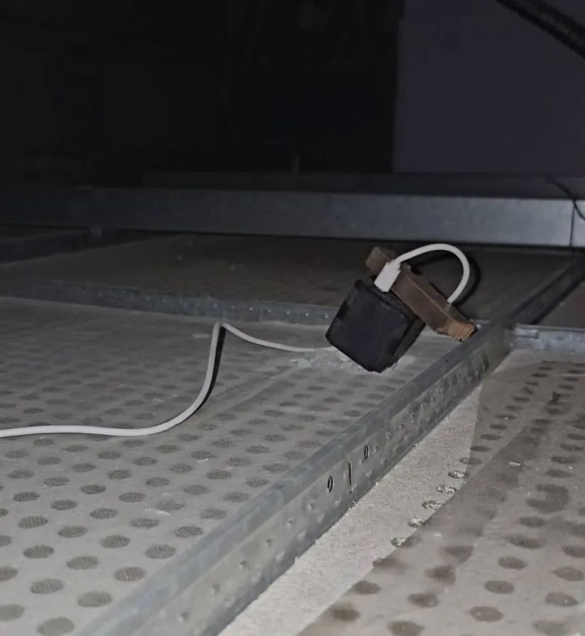 博主描述,他与警方一同进入房间,看到房间内有一个两米高、一米五宽的衣柜、一张可供休息的床、一张桌子和一处洗漱台。随后,他们在房间内进行扫描和查找,最终在蜂窝状的天花板内发现了偷拍摄像头。“(摄像头)藏得非常深”,博主表示,该摄像头从外表看像一块充电器,旁边压着一块铁板。他称,根据拆除民警判断,铁板是为了固定摄像头位置,让偷拍视角保持不变。