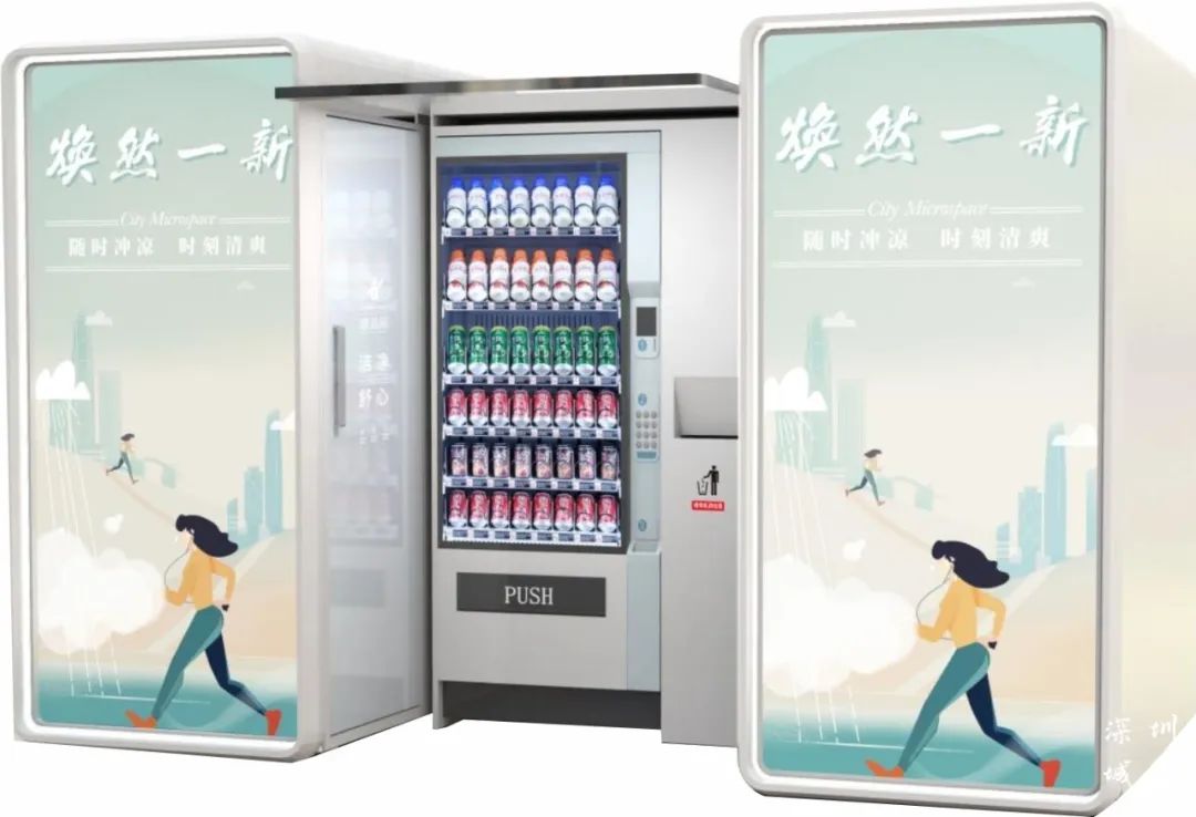 智能移动淋浴房 | 包括盥洗、化妆、置物、更衣、冷热水淋浴等功能,让运动后的市民享受干净卫生便利的淋浴。