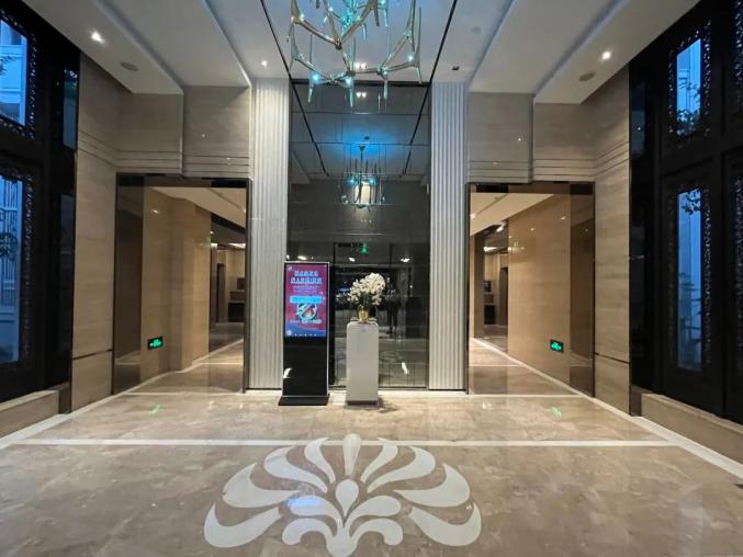 很方便的是,车库入户大厅和电梯是连通的,可以直达业主楼层入户大厅的顶部和地面全部铺装大理石,整体的品质不用多说