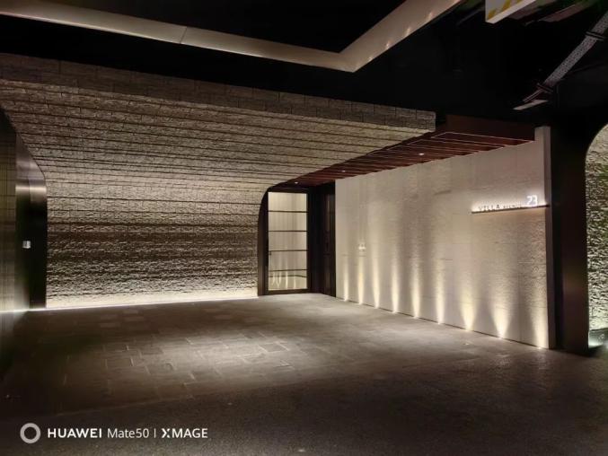 从这个角度去看,车库入口上方、地面都做了射灯作为点缀,充分利用光源增加车库美感
