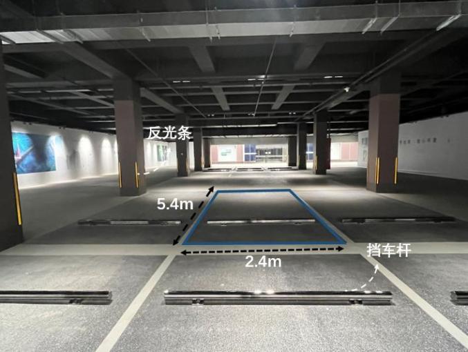 每个车位都有多个光源点的设置,这样倒车的视线是清晰的,减少视线盲点连车位上的挡车器也全部做了不锈钢材质