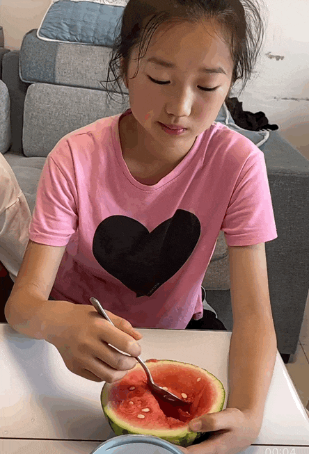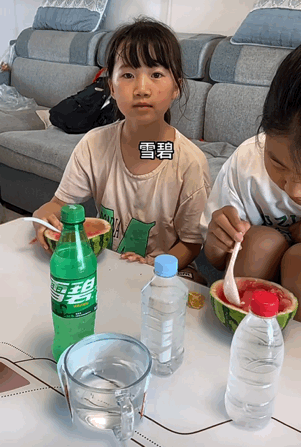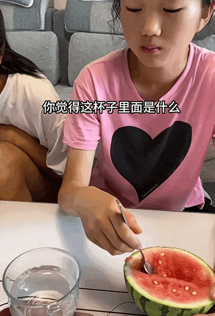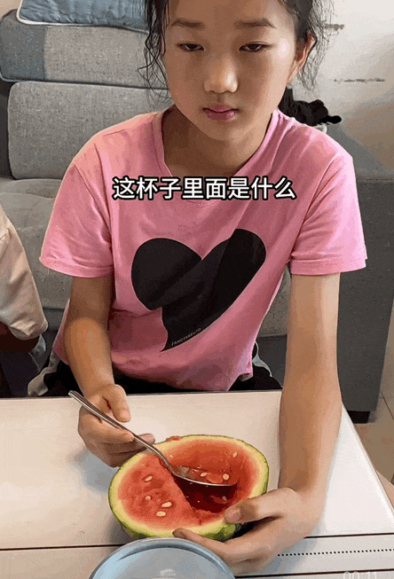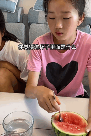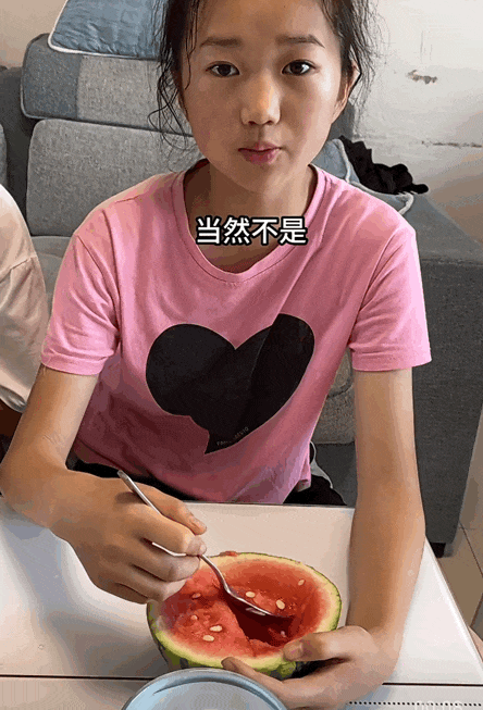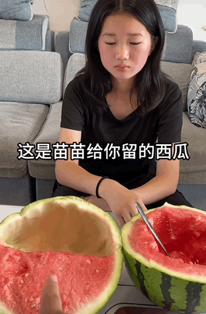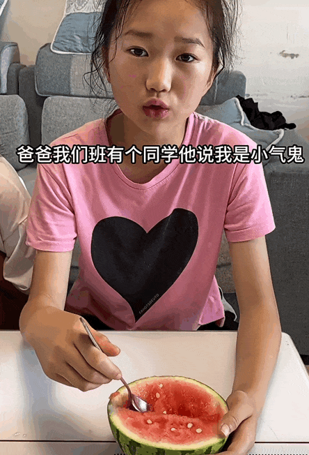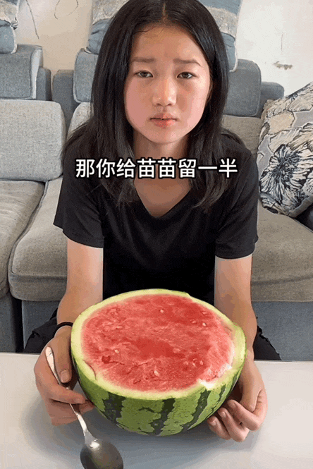 但不是让妹妹来吃,而是让她把自己给女孩留的西瓜拿出来。