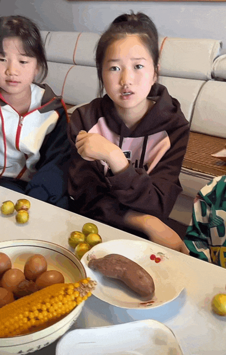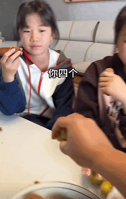 博主从口袋里拿出一个饼干,递给二女儿让她给姐姐妹妹分吃了。