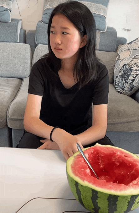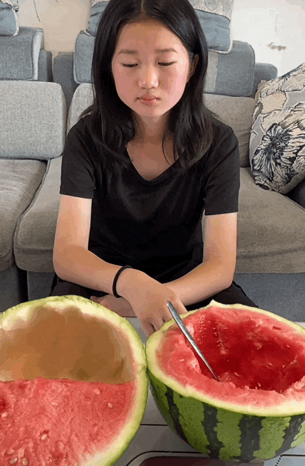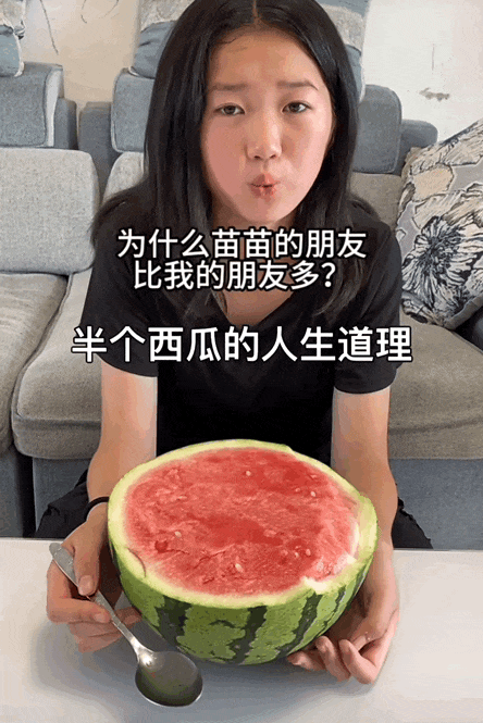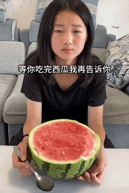 而是让女孩先吃西瓜,承诺吃完告诉她。