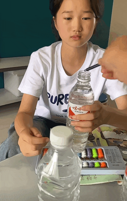 博主将纸杯里倒满牛奶,再次让女儿做选择。