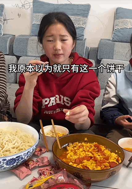 原本还在开心吃饼干的二女儿,一下子不开心了。