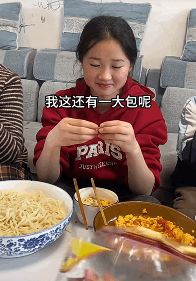 看到二女儿递过来的饼干,他拒绝了,并拿出一大包饼干放在桌子上。