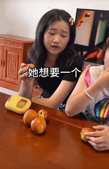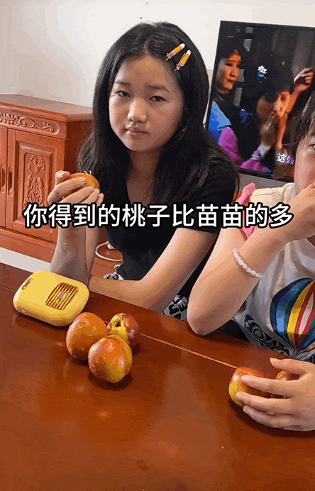 博主说完,还把小桃子递给女儿,让她尝尝,骗她这个其实很好吃。