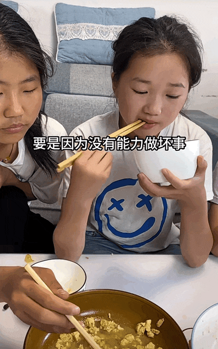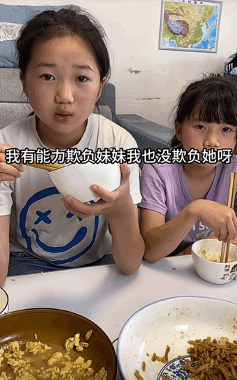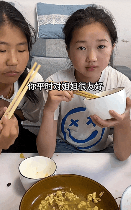 二女儿看了看姐姐,迅速回答:“她比我大,我打不过她。”