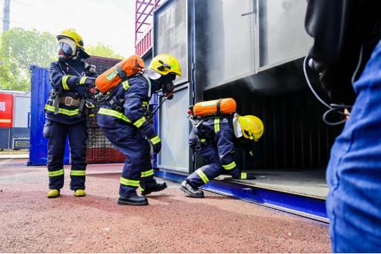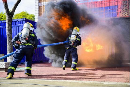 烟火环境回燃体验、烟火环境下小组撤离、沿安全绳撤离、沿水带撤离、沿拉梯撤离、水枪防护......活动上,消防队员们通过真火真烟演练展示了在真实火灾场景中的应急救援水平和协同作战能力。与会嘉宾跟随消防员的第一视角,深入了解火灾现场的每一个细节,近距离感受真火真烟的紧张与刺激。