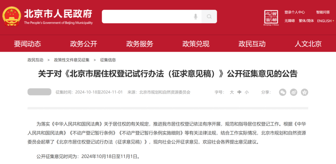 近日,《北京市居住权登记试行办法(征求意见稿)》在北京市规划和自然资源委员会网站完成了公开征集意见的工作,为居住权的实现进一步提供了法律依据和操作指南。