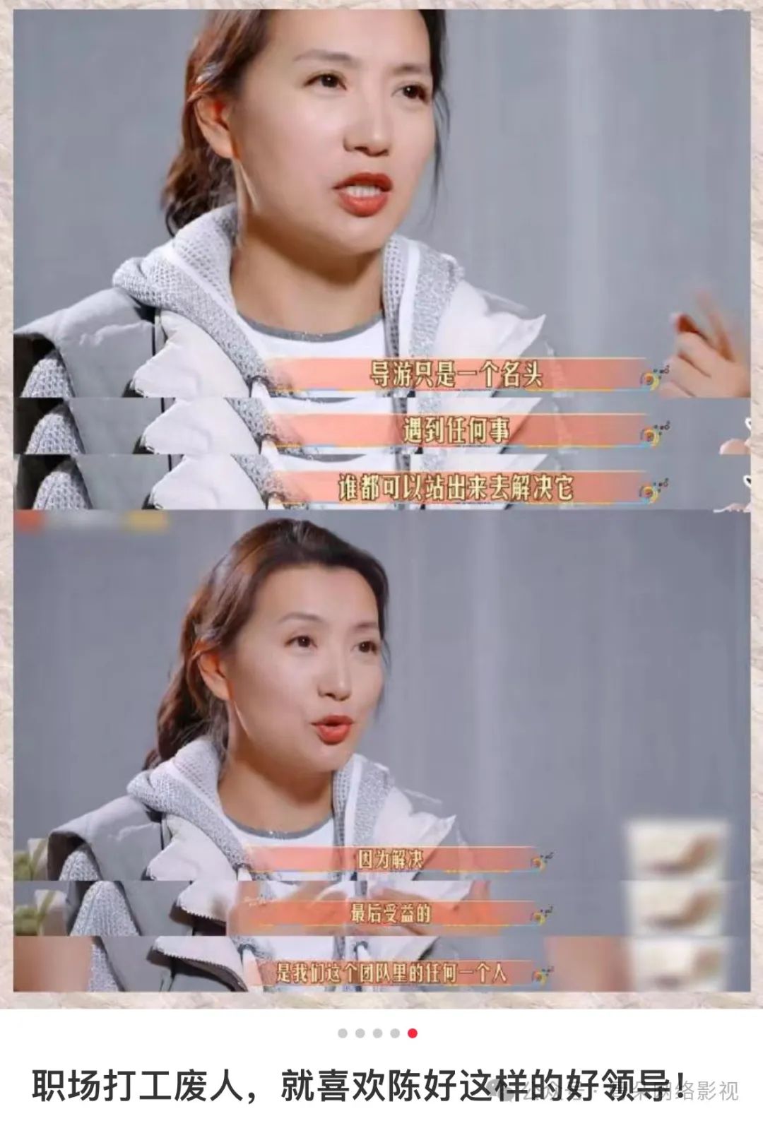 以及这季《花少6》,本打算在第一次全员会议时拿陈好对导游一问三不知状态的质问做文章,不断用BGM和团员表情的搭配强化“陈好压迫感”。却没想到被观众一眼看穿剪辑手法,不仅还原了会议时间线,还夸赞陈好会抓重点、雷厉风行。