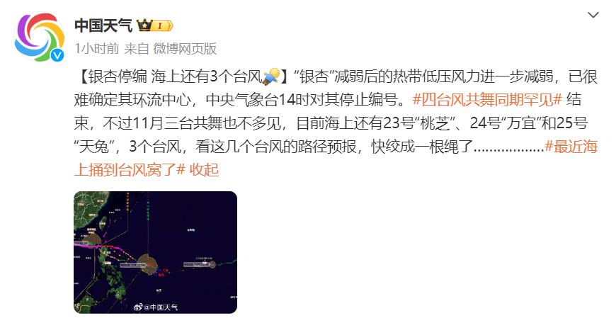 原标题:《26℃!先升后降!罕见:三台风共存……》