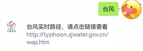 关注“无锡发布”公众号,进入无锡发布公众号对话界面,发送“台风”,即可查看台风实时路径。