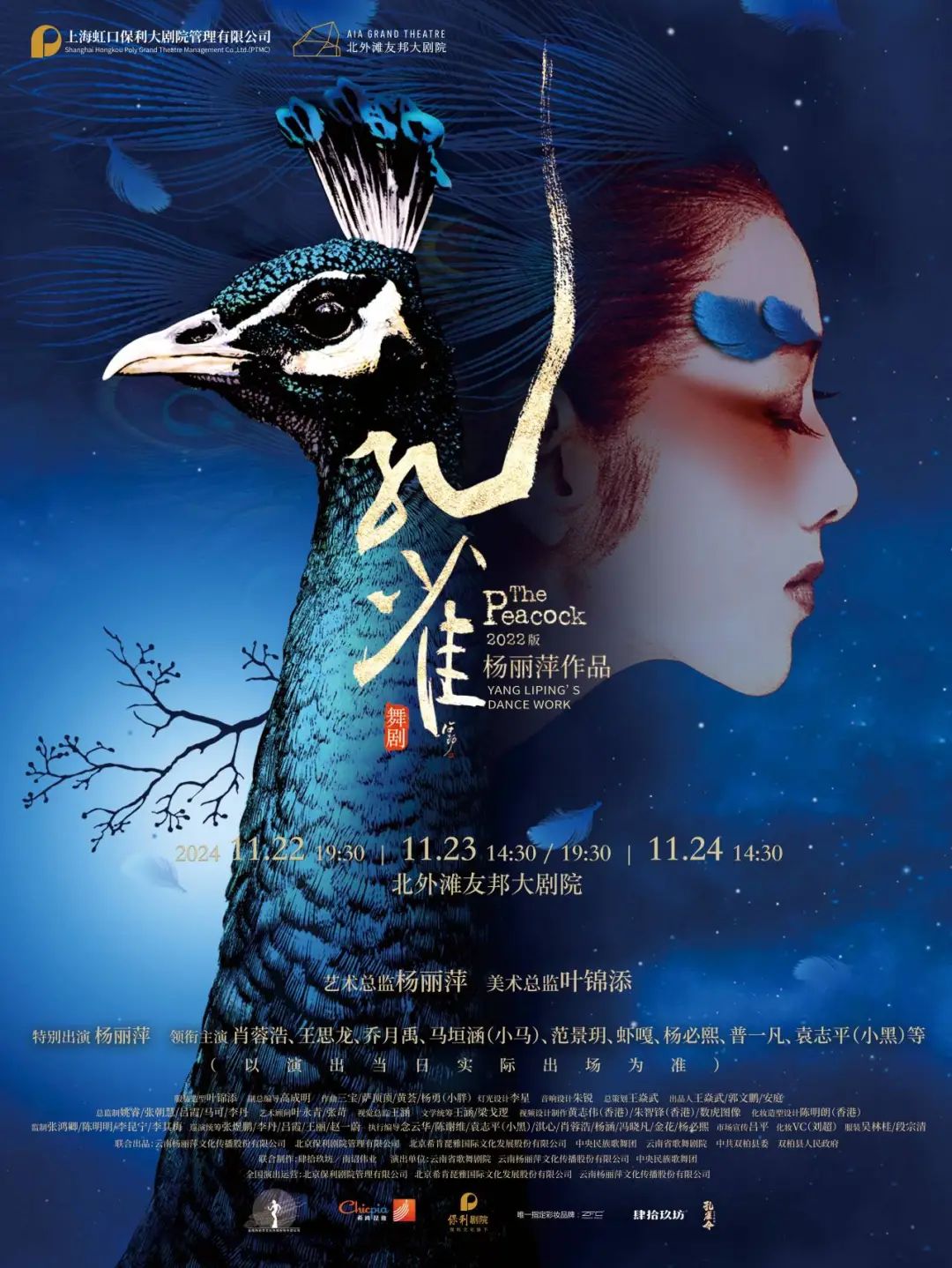 2024年11月22日至11月24日,一经上演便得如潮好评的经典舞剧——杨丽萍作品2022版《孔雀》,将在北外滩友邦大剧院连续上演4场,向申城观众展现最原汁原味的西南风光!届时,著名舞蹈家杨丽萍将亲自参演《冬之篇章》,续写独属于她的孔雀传奇!