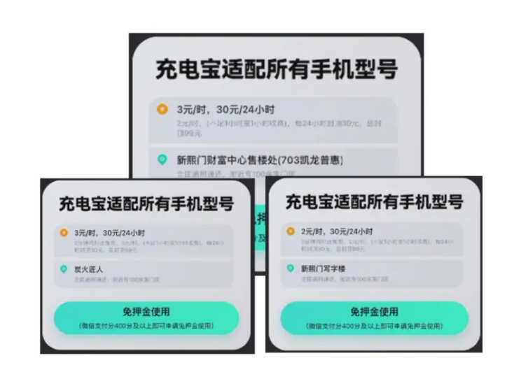 记者在走访过程中,发现成都区域不同点位的“怪兽充电”共享充电宝计费标准确实存在不统一的现象。记者实地调查,汇总不同点位计费标准,发现主要有3元/时、2元/时、3元/半小时、2元/半小时,即便是相邻几十米点位的共享充电宝,“怪兽充电”计费标准也不统一。比如成都金牛区新熙门写字楼附近几十米的两个点位“怪兽充电”共享充电宝,一个计费标准为3元/时,另外一个计费标准为2元/时。