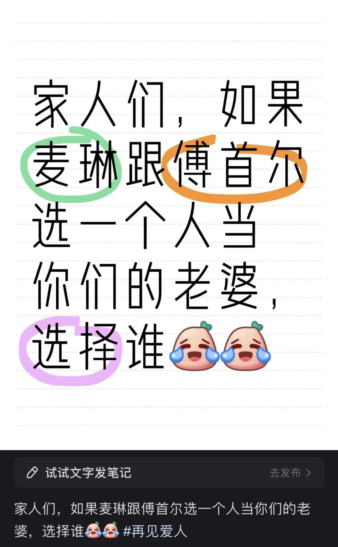 甚至有些看热闹不嫌事儿大的帖子发出了“如果一定要在傅首尔和麦琳之间做选择,你会选谁?”