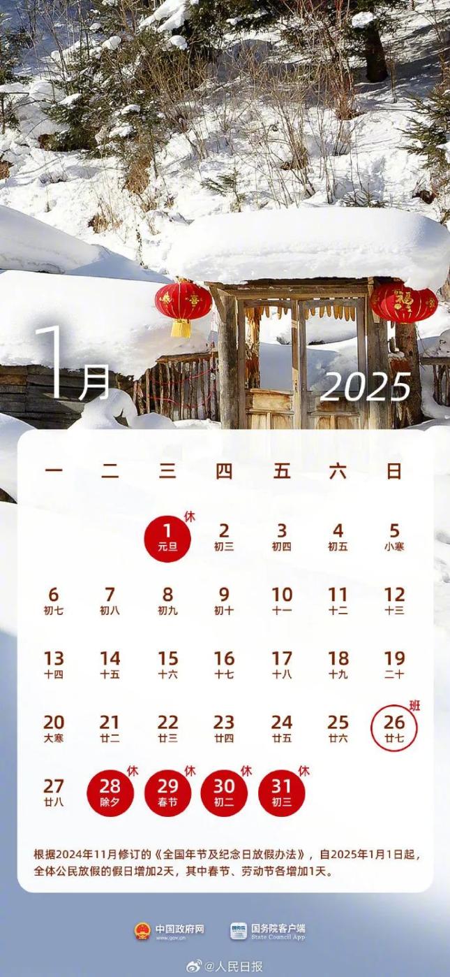 原标题:《2025年法定节假日最新发布!春节8天,劳动节5天……》