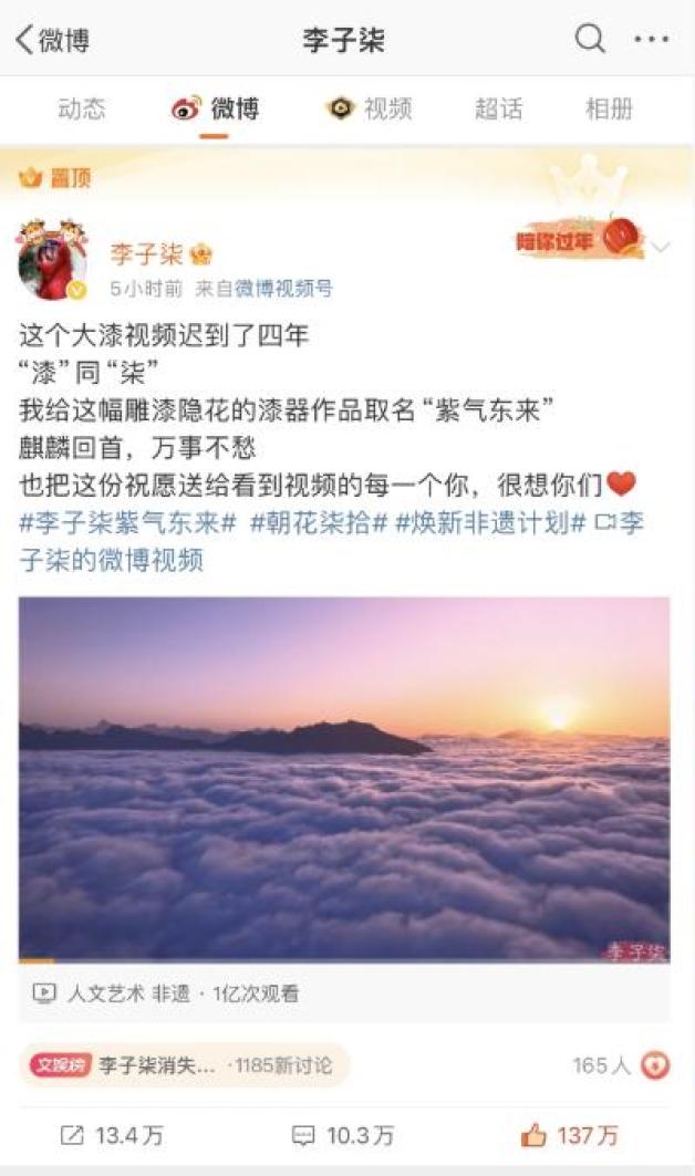 李子柒,终于回来了。11月12日下午,李子柒发布了一条漆器视频作品,正式宣布回归。