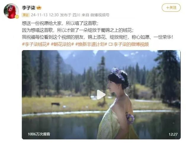 “在那些不曾相见的日子里,她一直坚持着中国非遗文化传承与传播,李子柒是独一无二的存在。。”
