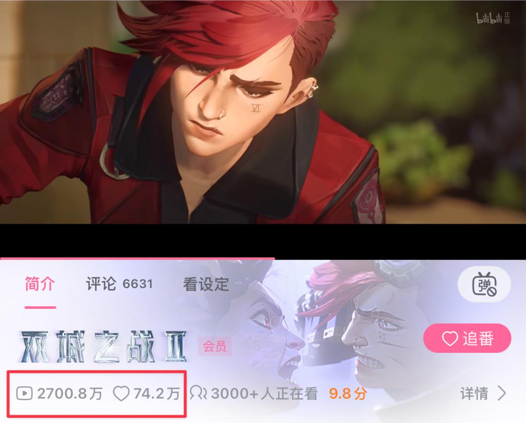 比如仅仅开播后两天,它在 B 站的播放量就已经突破 2000 万,中配版突破 600 万。