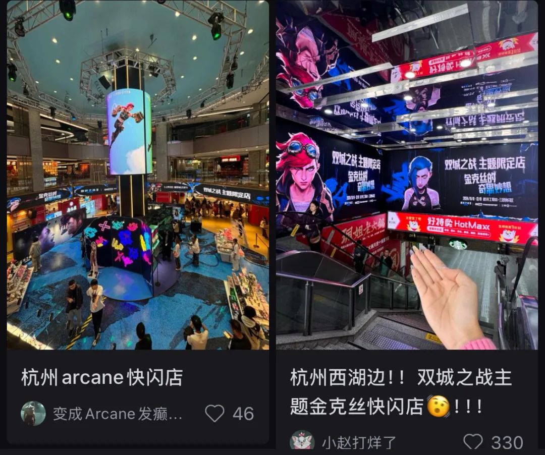 哪怕回到物理世界,也能发现周围商场不知何时换上了双城之战皮肤。