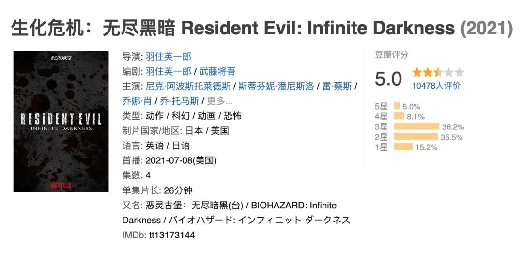 还有 2021 年被网友吐槽 “ 把新粉当弱智,把老粉当猴耍 ” 的《 生化危机:无尽黑暗 》。
