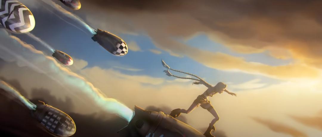 像皮尔特沃夫作为上层城市,整体画面就会更稳定。而切到混乱、无序的祖安后,团队就会采用了更多动态和摇晃的镜头,来彰显出下城特色。