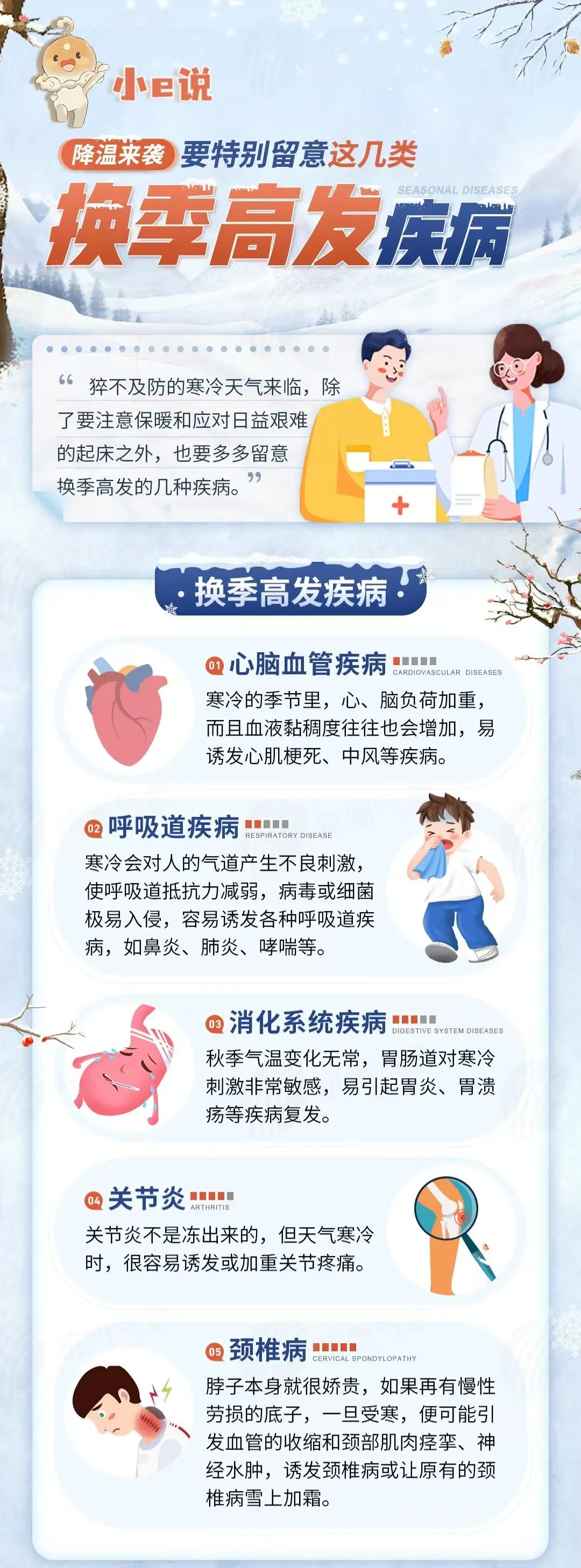 冷空气南下气温降低,很容易诱发心脑血管疾病、呼吸系统及关节炎等疾病,有这方面基础疾病的朋友更要格外注意。