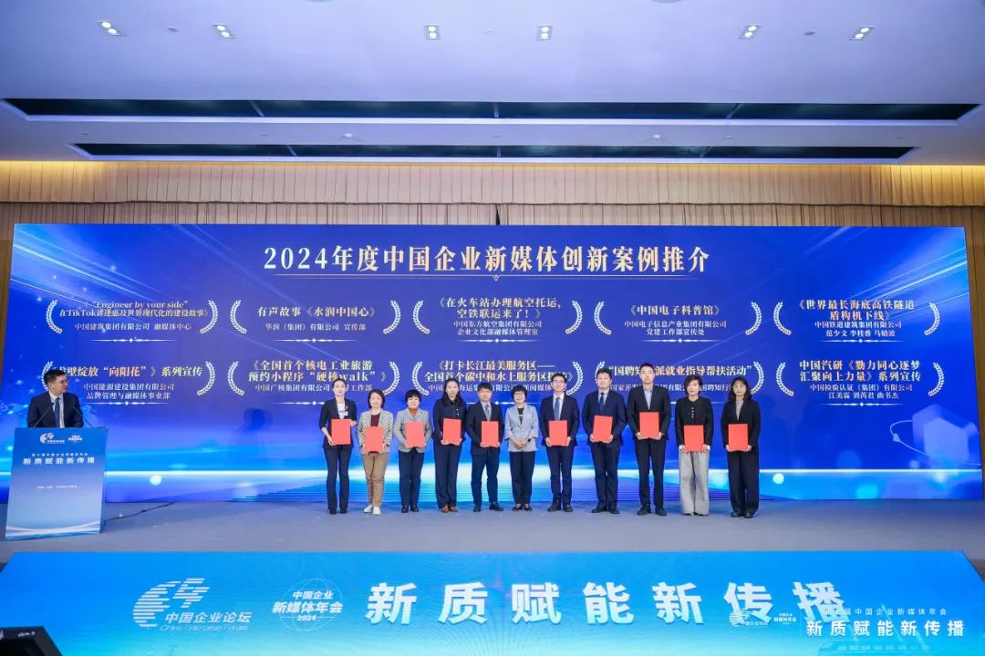 颁奖现场第十届中国企业新媒体年会聚焦新闻宣传如何传播新质生产力的思想和实践、如何培育传播领域的新质生产力。年会推介了国务院国资委新闻中心、中国公共关系协会联合征集的2024年度中国企业新媒体优秀案例,发布了“创新优秀案例”“创意优秀案例”“创作优秀案例”各10部。