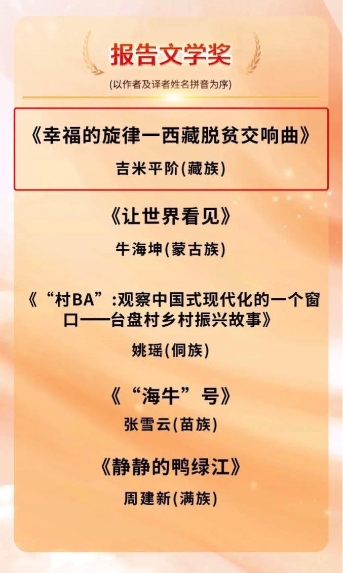 原标题:《祝贺!西藏作家尼玛潘多吉米平阶获骏马奖!》