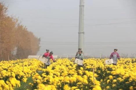 “挑选大朵饱满的,小的不要。”在金丝皇菊的种植基地,马郭庄村负责人正在指导村民如何挑选菊花。