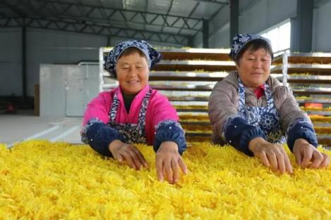 在烘干车间,“金丝皇菊”还给村民提供了大量的务工岗位。村民曲秀珍和王阿庆表示,他们常年在这里务拣花、烘干、包装等零工,每年能挣两千多元的零用钱。