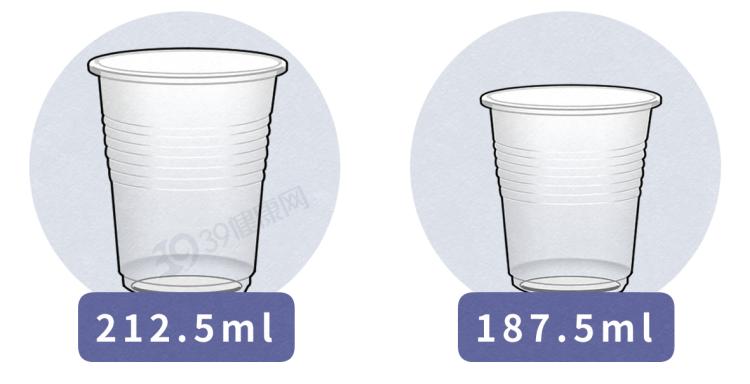 据《中国居民膳食指南2022》,在气候温和、低身体活动水平(很少运动)的条件下,成年男性每天应喝水1700ml,成年女性每天应喝水1500ml。如果按一天喝8杯来算,那么男性要用212.5ml的杯子,女性则要用187.5ml的杯子,大概是中号一次性杯子和小号一次性杯子的大小。